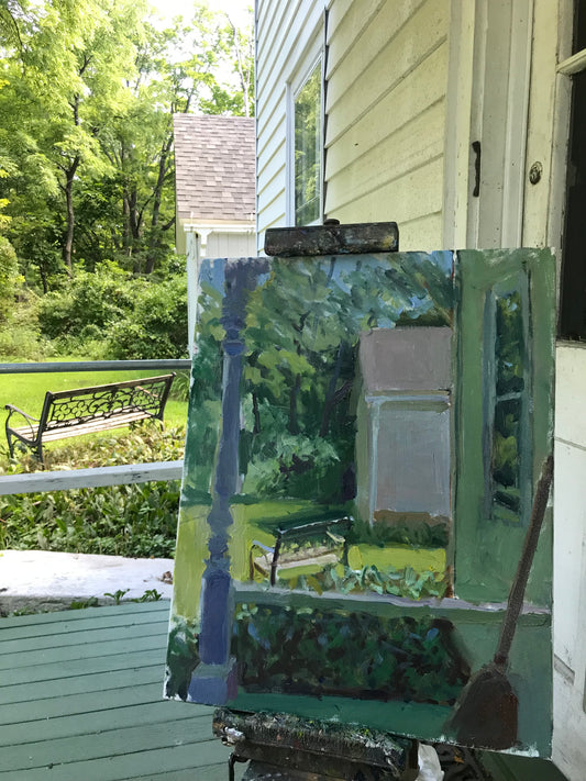This painting has been sold.White Lilac and Barn (11 x 14 Inches)