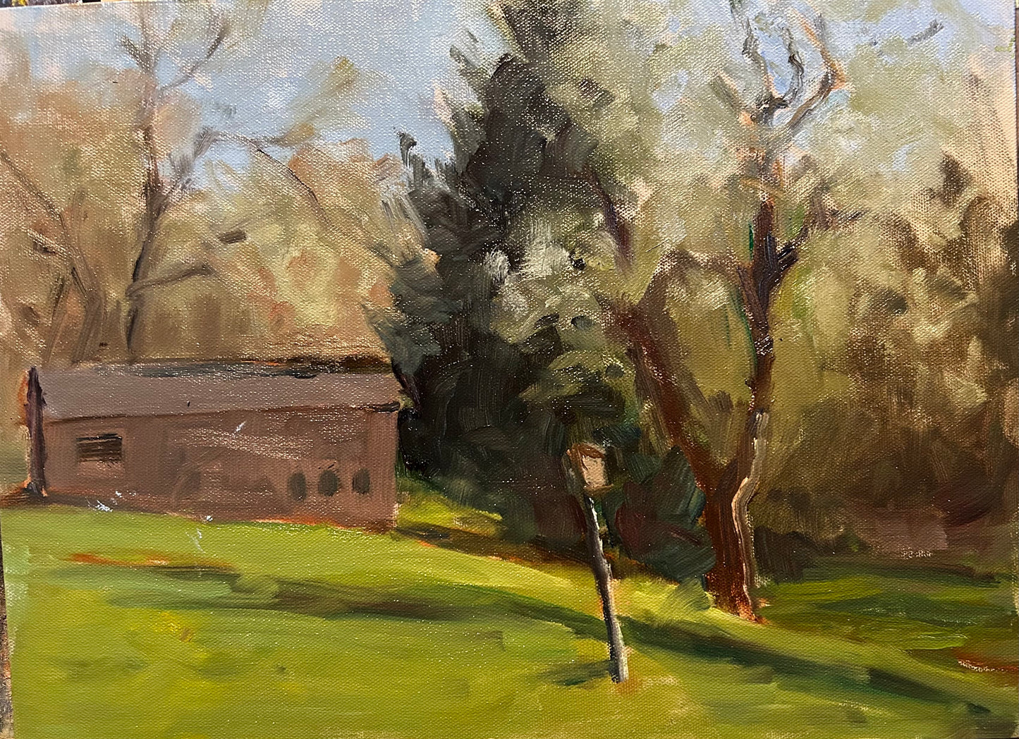 Barn and Pear Tree, Oil on Canvas, 12 x 16 Inches by Susan Grisell
