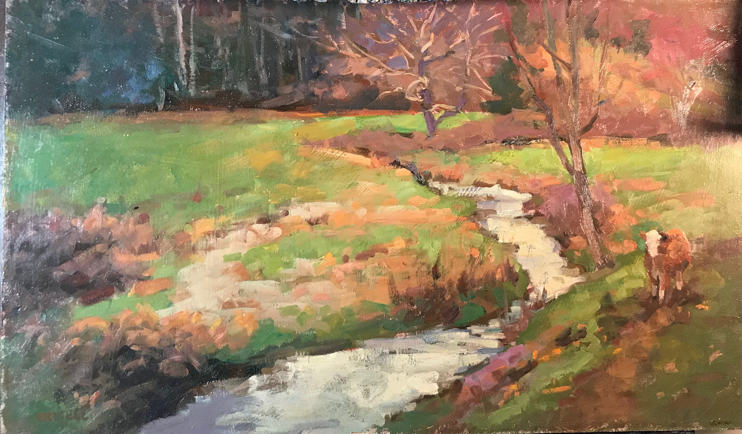 “Hereford by the Brook” Oil on Panel, 14 x 24 Inches, by Susan Grisell
