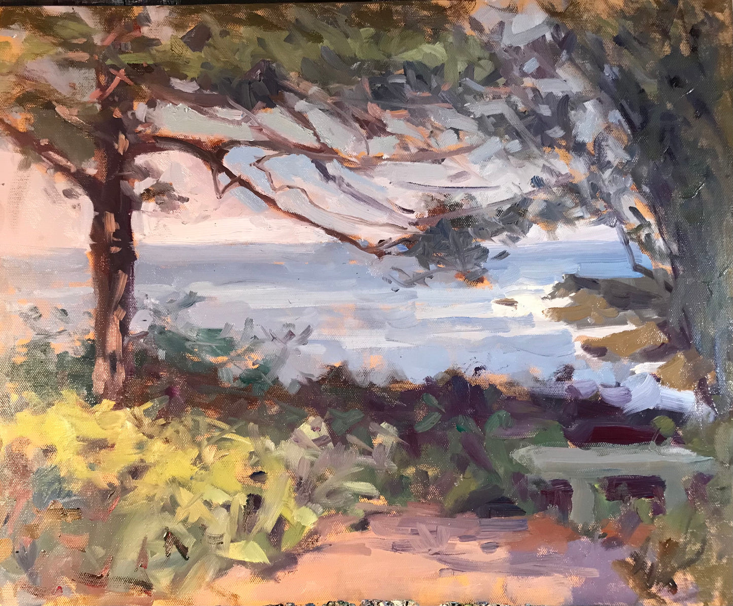 “Juniper at Ogunquit” Oil on Canvas on Panel, 16 x 20 Inches by Susan Grisell