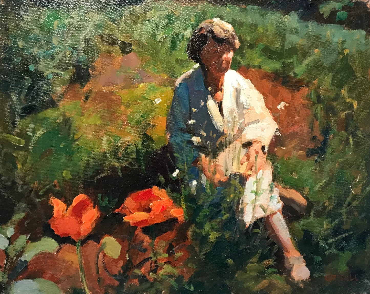 Ruth and Poppies, Oil on Canvas, 16 x 20 Inches, by Susan Grisell
