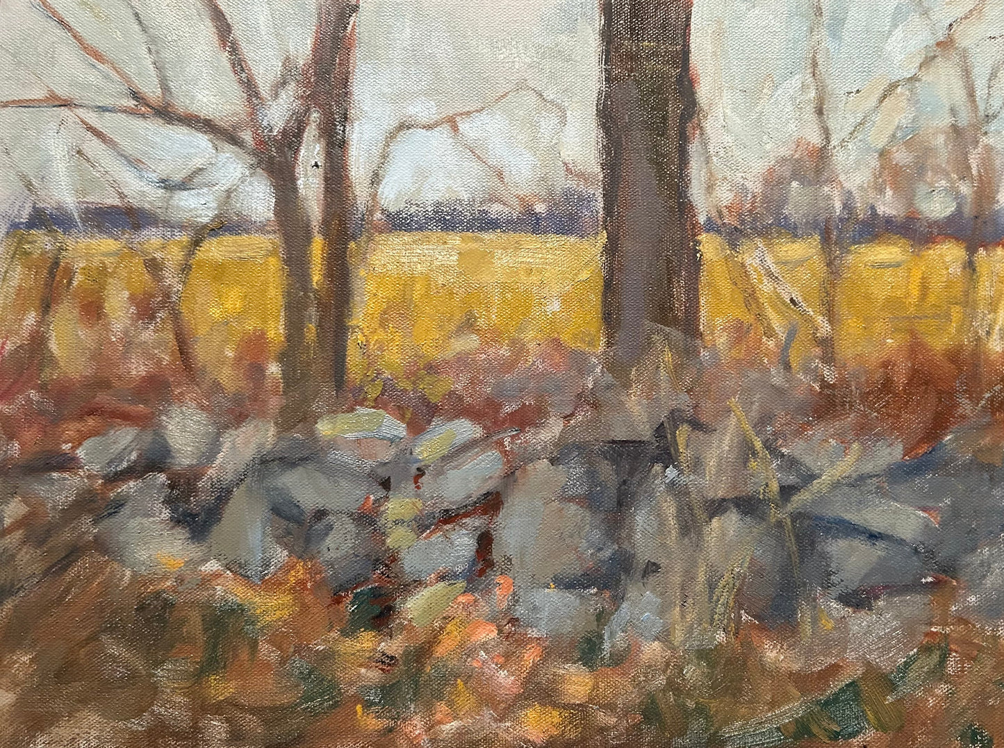 “Stone Wall”, Oil on Canvas on Panel, 12 x 16 Inches by Susan Grisell