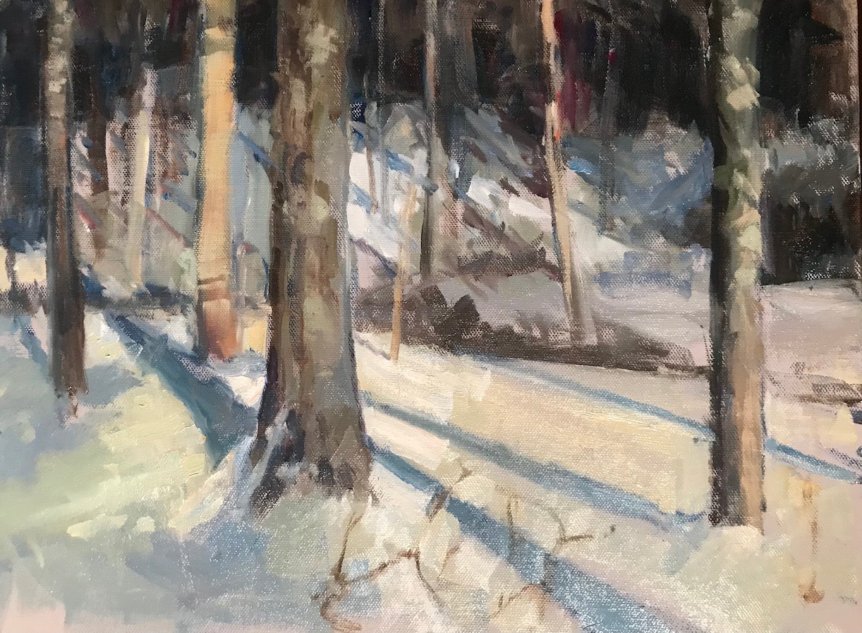 “Trees and Shadows” Oil on Canvas on Panel, 12 x 16 Inches by Susan Grisell