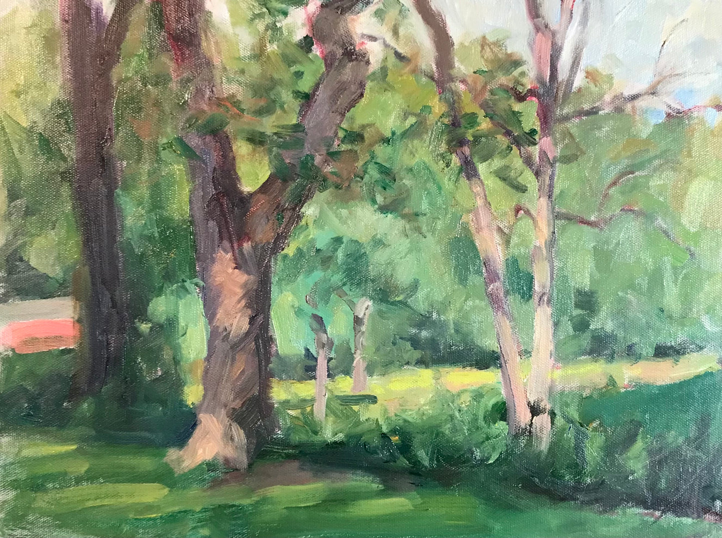 “Trees in the Park”, Oil on Canvas on Panel, 12 x 16 Inches by Susan Grisell
