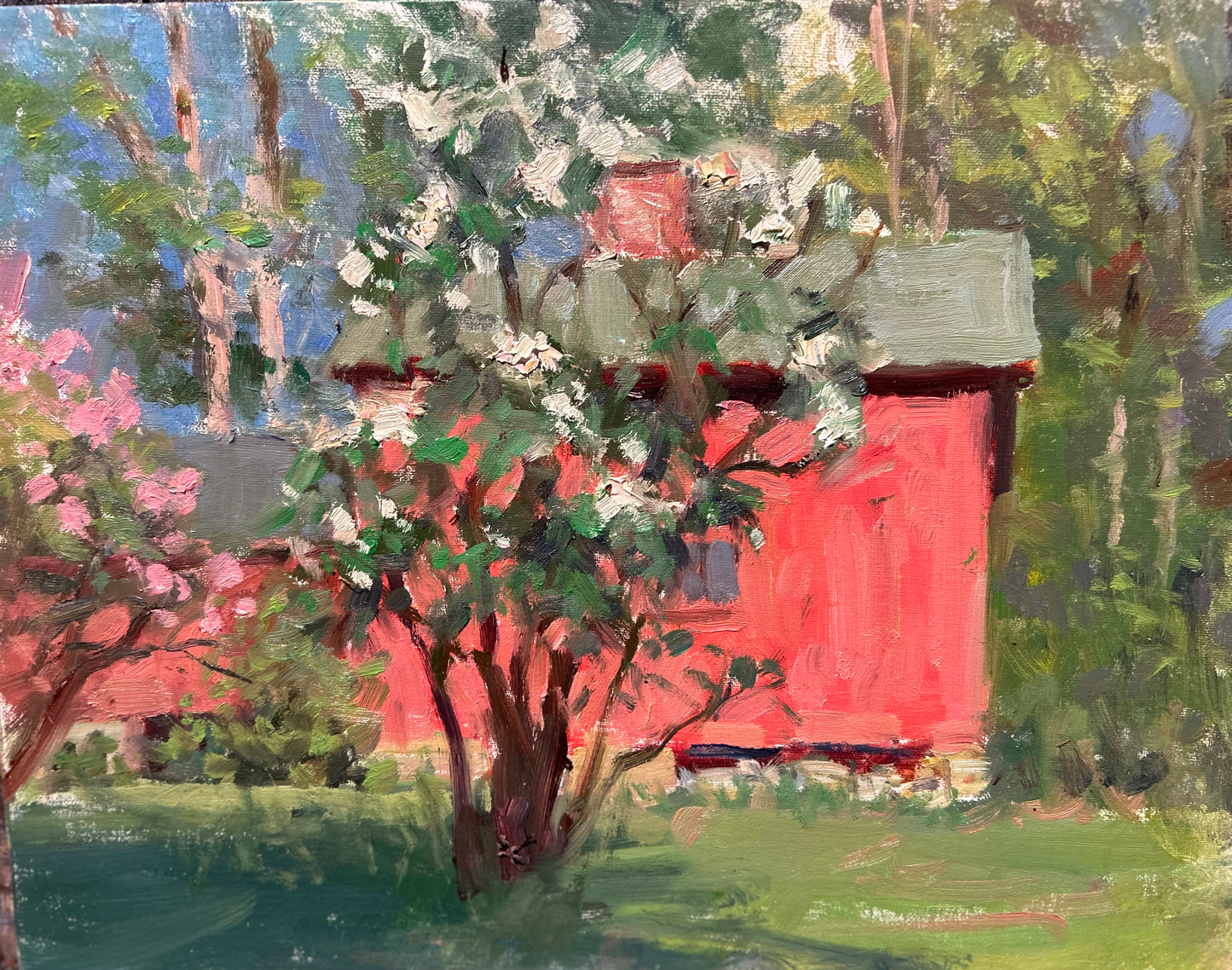 White Lilac and Barn (11 x 14 Inches)